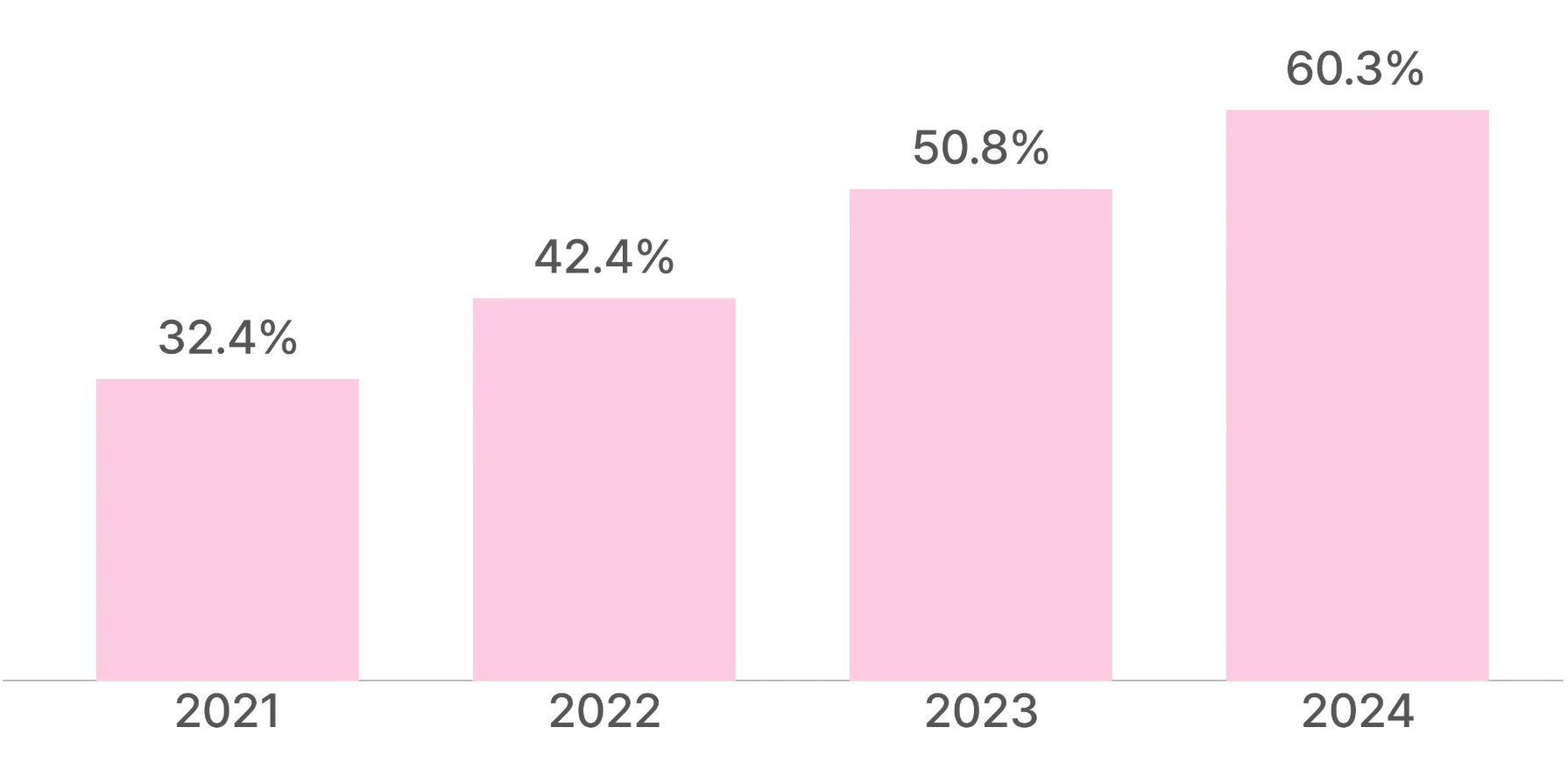 특히 생성형 AI는 1년 새 17.6% → 33.3%로 ‘거의 2배’ 늘었습니다.